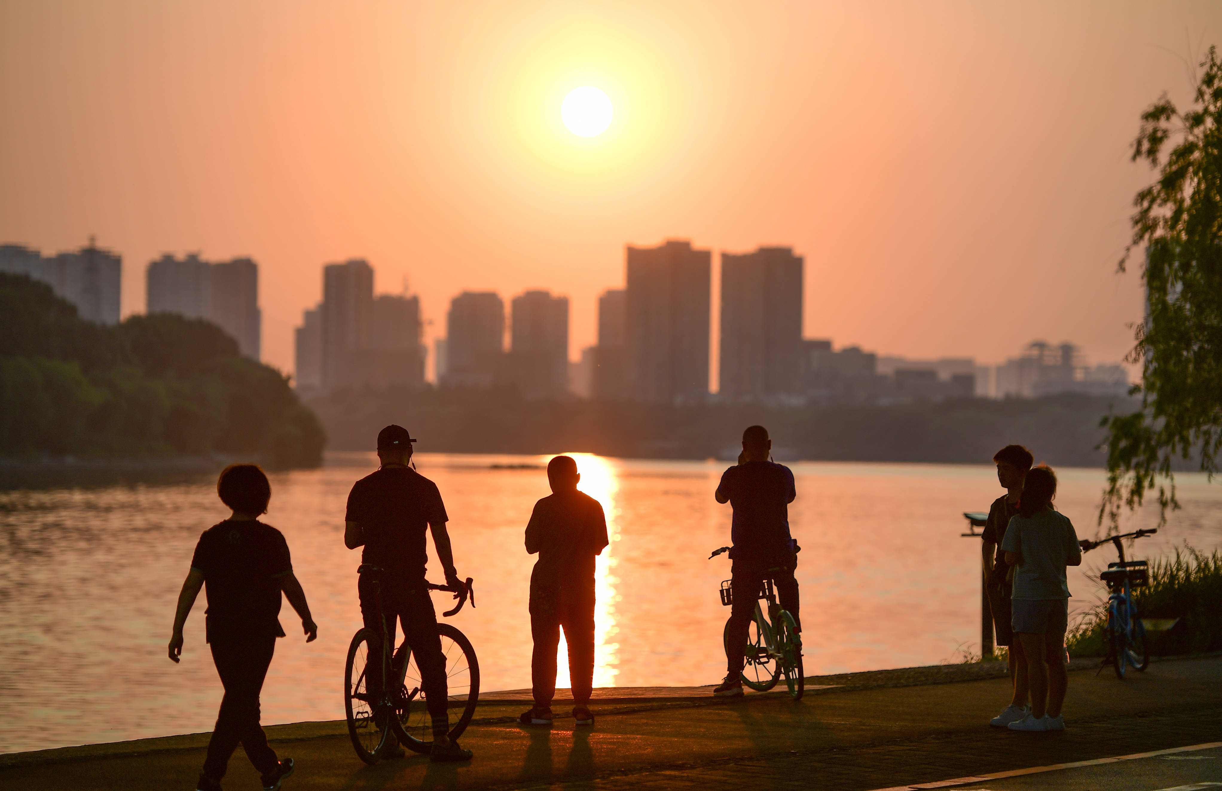 骑行的市民在浑河岸边驻足欣赏夕阳。新华社记者 蔡湘鑫 摄年初,沈阳地铁集团上线碳积分平台,乘客选择地铁出行,就能获得碳积分,兑换餐饮折扣、景区门票等,目前已吸引36万余人参与。