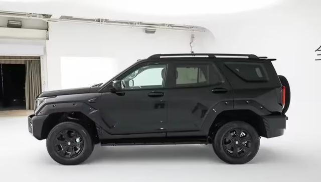 来到车侧,新车配备了粗犷的轮眉有铆钉的设计,并采用全新的黑化风格轮圈。车型尺寸方面,新车长宽高分别为4964/1970/1905mm,轴距为2850mm。