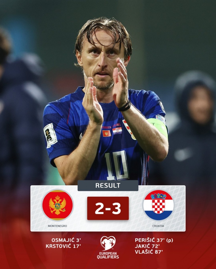 此役上半场奥萨马季奇、科尔斯托维奇为黑山破门,佩里西奇点射扳回一城,下半场第72分钟亚基奇扳平比分,第87分钟弗拉西奇攻入绝杀进球,最终克罗地亚3-2逆转黑山。